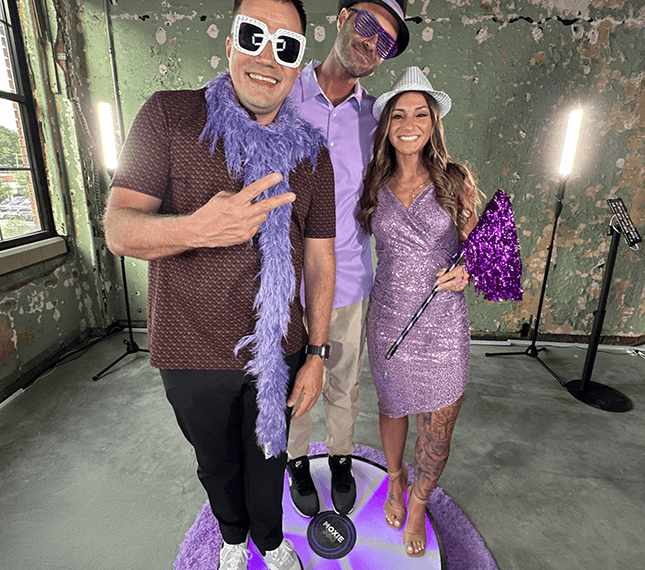The Moxie 360 Experience is not your average photo booth — it’s a full-on production. Guests step onto a custom platform while a rotating camera arm captures stunning, high-definition slow-motion video from every angle.